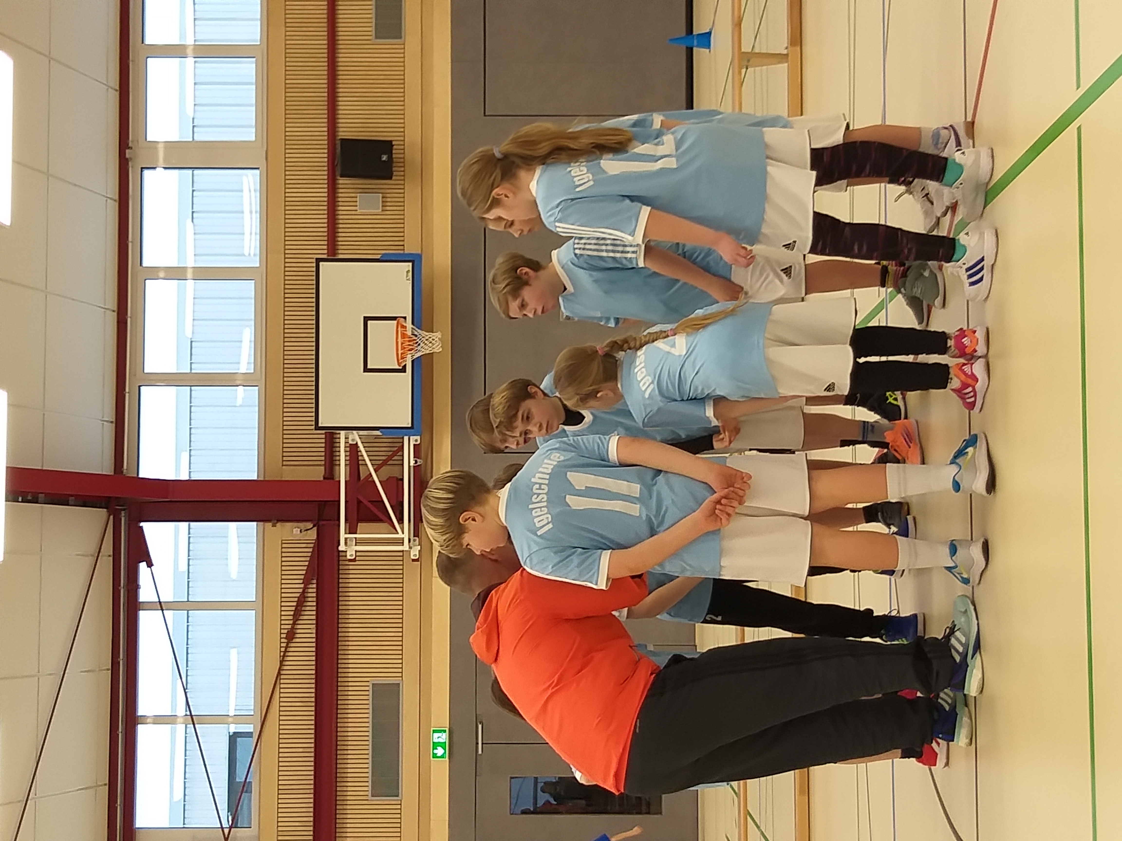 Gleich das erste Gruppenspiel sorgte für Herzklopfen. Im Lokalderby gegen die Anne-Frank-Schule war beiden Mannschaften die Nervosität deutlich anzumerken. Es wurde um jeden Punkt gekämpft. Mit dem besseren Ende für unsere Igelschüler, die das Spiel knapp für sich entscheiden konnten.